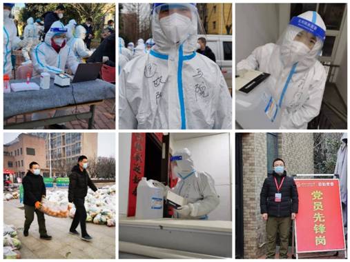 一是党员冲锋在前,志愿服务当先。支部新党员孙江可老师多次身着防护服,参与南校区核酸检测登记、家属区出入值守、蔬菜物资装卸搬运等工作,支部新入职党员欧阳资沛老师参与西电科大社区(光华路)志愿服务,助力核酸检测工作,支部新党员、教研室主任田朝晖老师负责教研室工作,时刻关注操心着原理课的期末考试和教学总结工作,在疫情防控的情况下,积极组织教研室教师开展线上集体备课。支部党员刘向舒协助所在社区下沉干部做好消杀记录、出入登记、人员底册、核酸检测台账和帮助特殊人群采购等工作。他们忙碌的身影和坚定的眼神,彰显了新时代思政课教师党员坚定、乐观、从容的风采和勇于奉献的精神。
