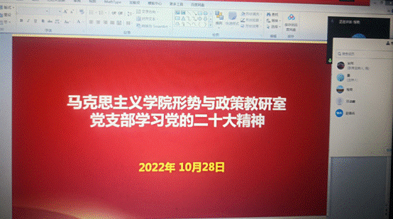 (通讯员 宋玮、赵普兵)10月28日下午,yl23455永利集团形势与政策教研室党支部在线上集体学习党的二十大精神并进行理论研讨,研讨会由支部书记宋玮主持。