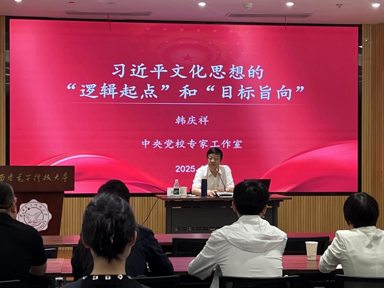 4月26日下午,国家哲学社会科学一级教授、中央党校(国家行政学院)专家工作室领衔专家韩庆祥教授,应邀为我院师生作题为“习近平文化思想的逻辑起点与目标旨向”的学术报告。马院部分教师和研究生参加了报告会,会议由李刚教授主持。