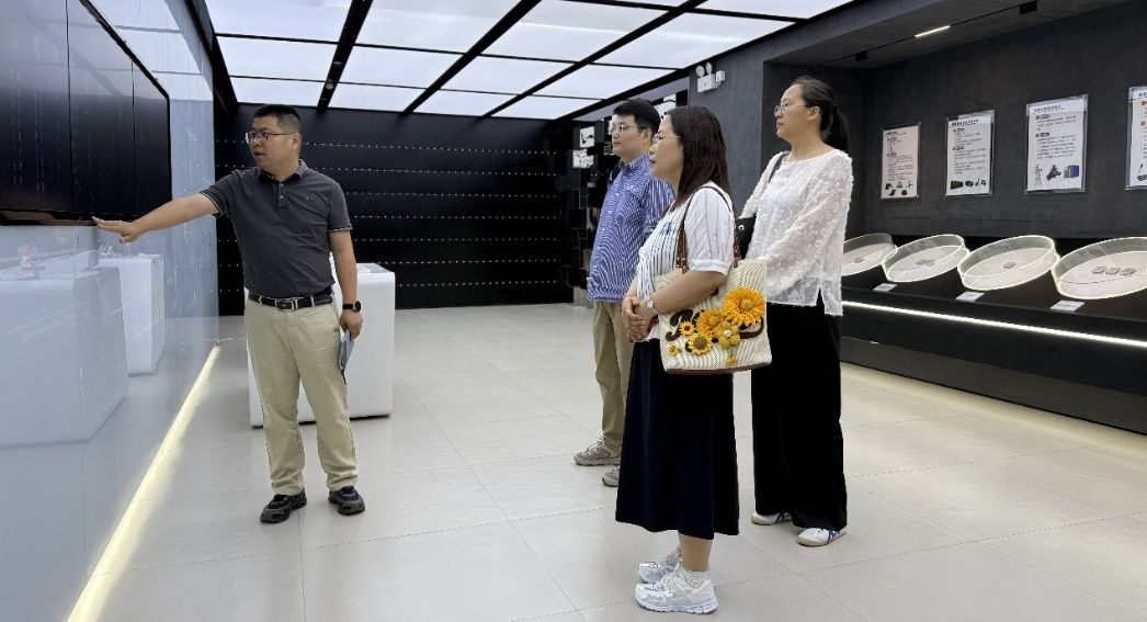 在参观中,地芯引力科技有限公司对外事务总监邹庆带领调研组一行参观了研发中心、实验测试中心和企业展厅,就企业发展历程、技术研发、发展前景和未来规划等方面对公司作了详细介绍。调研组一行深入了解了公司的产品情况,现场试用了部分互动产品,并与邹庆总监就该公司与西电杭研院共建实验室、积极探索技术成果转化以及人才培养等方面的合作情况进行了重点交流。