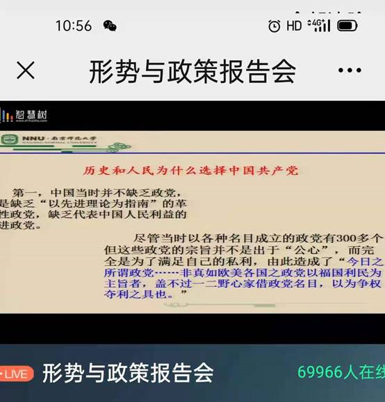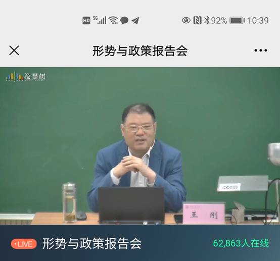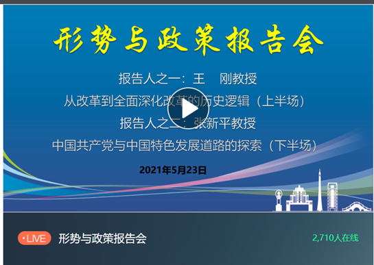 (通讯员 程霞)按照省委教育工委统一安排,2021年5月23日上午,我校形势与政策全体任课老师通过智慧树网络直播平台,收看了由陕西大学生形势政策教育信息中心组织的党史学习教育主题专家报告会。