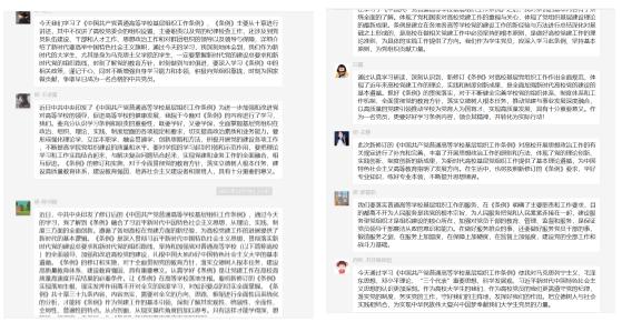 会议结束后,支部其他党员也积极在支部群里发表自己的学习感想。不管是现在还是未来,我们都要把握新时代脉搏,瞩目于中国现实问题,加强思想政治教育入脑入心,营造风清气正的政治学术环境,树立成熟可靠的社会主义世界观、人生观、价值观,落实好为谁培养人,培养什么样的人的问题,把立德树人的基本要求融入思想政治教育的全过程之中,助力高校培养合格的社会主义建设者和接班人。