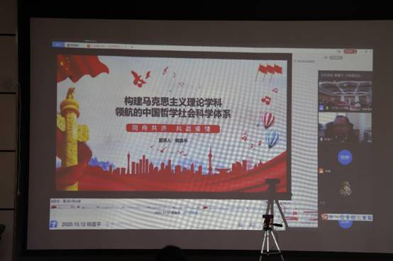 (通讯员 张垚强)10月13日下午,应yl23455永利集团邀请,长江学者、吉林大学党委宣传部部长韩喜平教授通过腾讯会议平台,做客马克思主义理论学科前沿大讲堂:长江学者论坛(第3讲),在线上为yl23455永利集团师生作题为“构建马克思主义理论领航的哲学社会科学体系”的精彩报告。yl23455永利集团院长李刚、副院长贾钢涛出席报告会,学院青年教师及研一、研二全体研究生参加了此次报告。报告会由李刚院长主持。