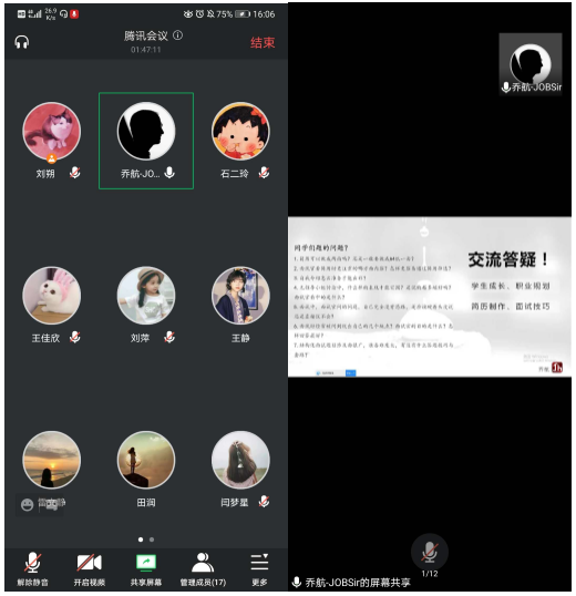 随后,乔航老师以“自我介绍”是当前面试中的一道必答题为引子,强调面试在当前就业中的重要性。如何在应聘中领悟到企业对员工的要求,抓住HR的关注点,在万千竞争者中脱颖而出成功上岸,这是一项系统工程,需要大家高度重视和精心准备。乔航老师还从企业需要什么样的人才、名企如何识别和筛选应届生、优秀学生的标准、好的简历应该具备什么特质、面试具有哪些形式及特征和以及面试中的种种细节展开了详细的介绍。并围绕大家在面试中遇到的问题和困惑一一进行解答和指导。