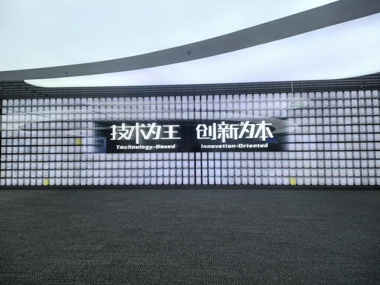 活动伊始,师生们在讲解员的引导下步入创业历史展厅。一部浓缩企业奋斗历程的纪录片,生动展现了比亚迪从电池领域起步,逐步成长为横跨汽车、新能源、轨道交通等领域的创新型高科技企业的峥嵘岁月。随后,一面震撼人心的专利墙映入眼帘,墙上密密麻麻的专利证书,不仅是比亚迪坚持自主研发的丰硕成果,更是其以“技术为王,创新为本”为核心企业精神的具象化彰显。八个鎏金大字熠熠生辉,深刻诠释了企业持续引领行业发展的核心密码。