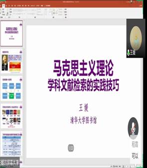 (通讯员 赵阳)5月29日下午,“马克思主义理论学科文献检索的实践技巧”线上专题讲座成功举行。清华大学图书馆信息参考部副主任,中国图书馆学会阅读推广委员会副秘书长、副研究馆员王媛应邀做报告,学院部分教师和全体研究生参加报告会,学院党委副书记刘建伟主持报告会。