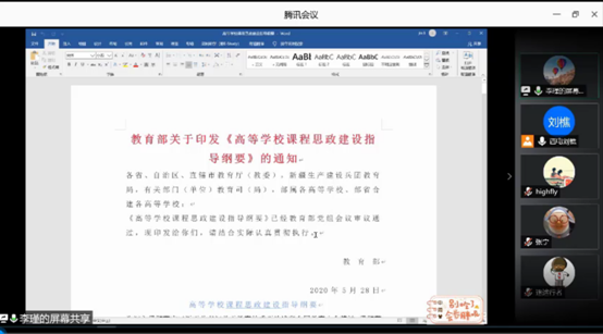(通讯员 李瑾)为落实教育部《高等学校课程思政建设指导纲要》,全面推进高校课程思政建设,探索思政课教师与专业课教师合作教学教研的有效方式,yl23455永利集团基础教研室支部与网信院信安系教师支部开展基层支部共建工作。7月9日下午三点,举行了支部共建的第二次主题活动,会议由信安系教师支部副书记刘樵主持,22位教师列席会议。会议在线上召开。