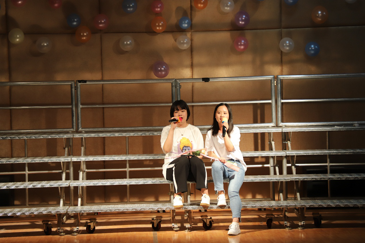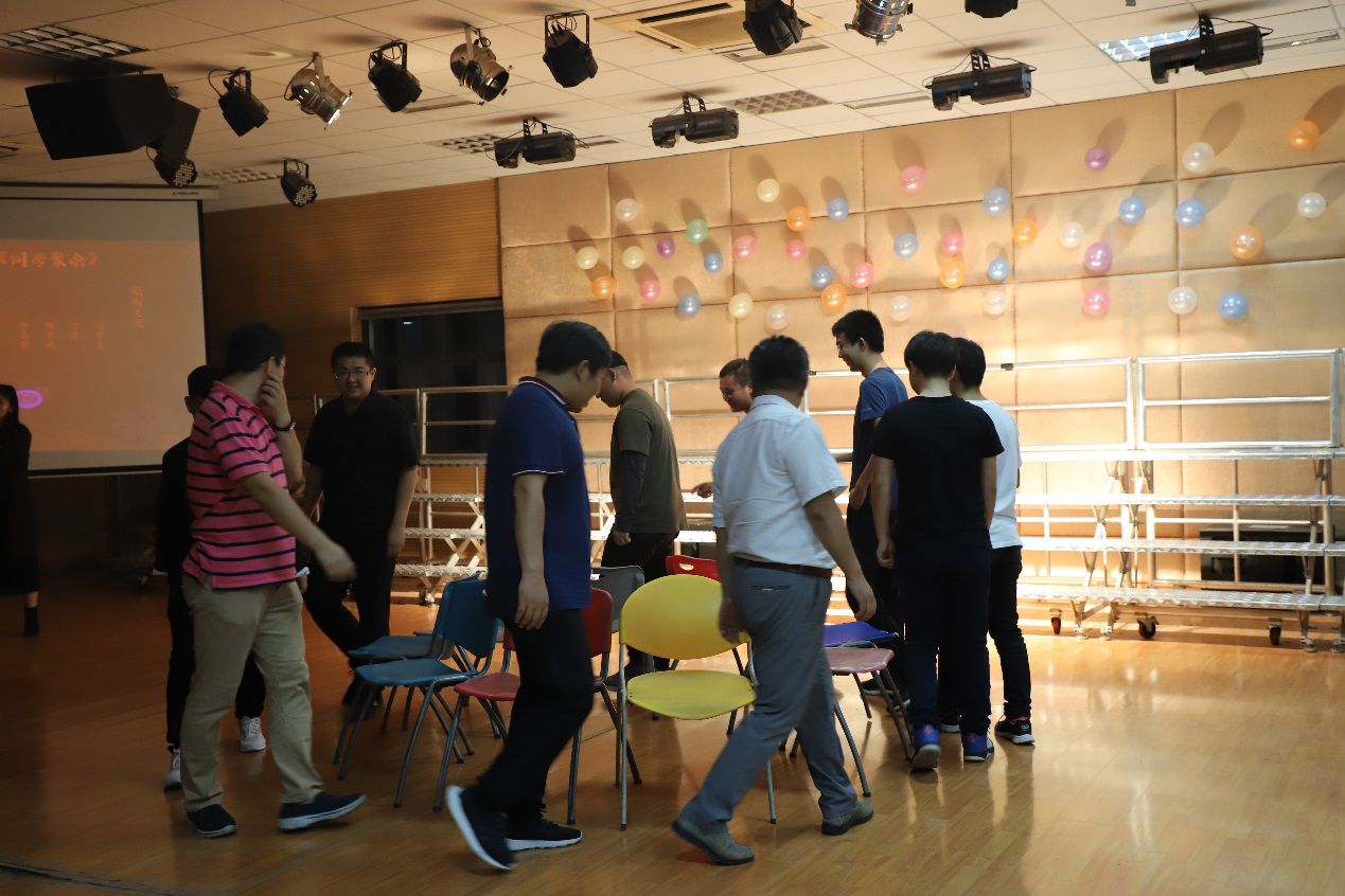 在游戏环节,老师、学生鼓足干劲,气氛活跃,乐趣盎然,即使屋外乌云遮月,但屋内歌声、鼓掌声、加油声,声声入耳,情义远传。