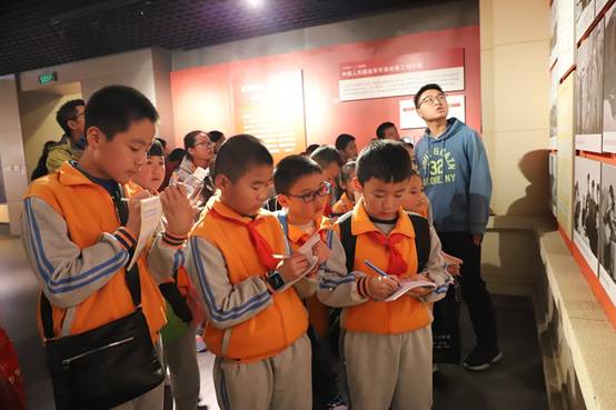 在学校校史馆,刘建伟和校史馆的讲解员一起为孩子们进行讲解,通过照片的生动展示与讲解员声情并茂的讲解,孩子们了解了我校光辉的革命历史与红色基因,深刻感受了一代代西电人奋勇争先的革命精神。在参观中,小学员们不时拿笔记录,天真的小脸上写满了对前辈的敬佩。