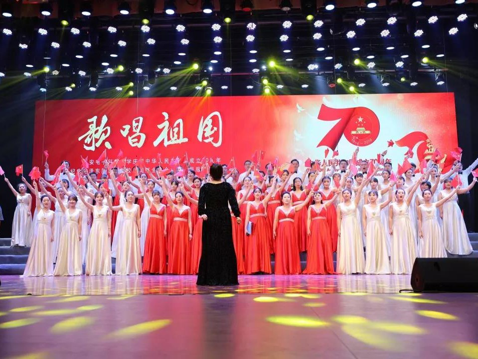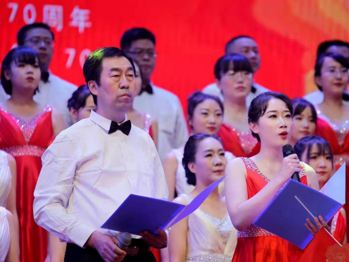 我院本次合唱比赛由刘凯指挥,党委书记夏永林和办公室刘朔老师朗诵,学生刘林希领唱。师生们满怀深情的演唱了《不忘初心》和《我和我的祖国》两首歌曲,富有感染力的歌声表达了全院师生对祖国的真挚祝福。