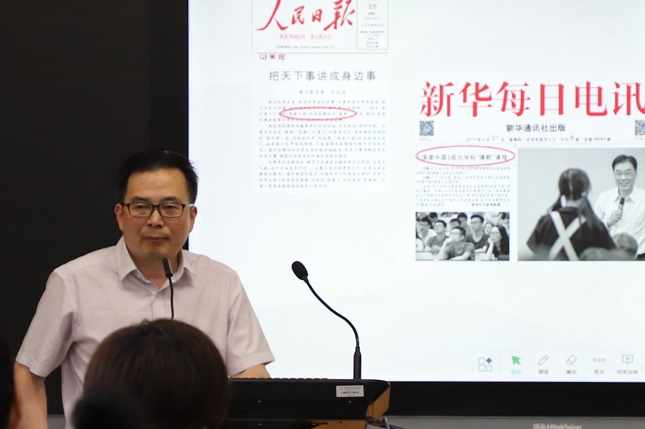 李刚对深度中国课程的优秀经验进行了总结,认为其把一般的思政课程做成了学校品牌课程的成功经验,在为全国思政课改革提出新的思路,提供深刻的启示的同时,也为我院思政课建设送来春风。