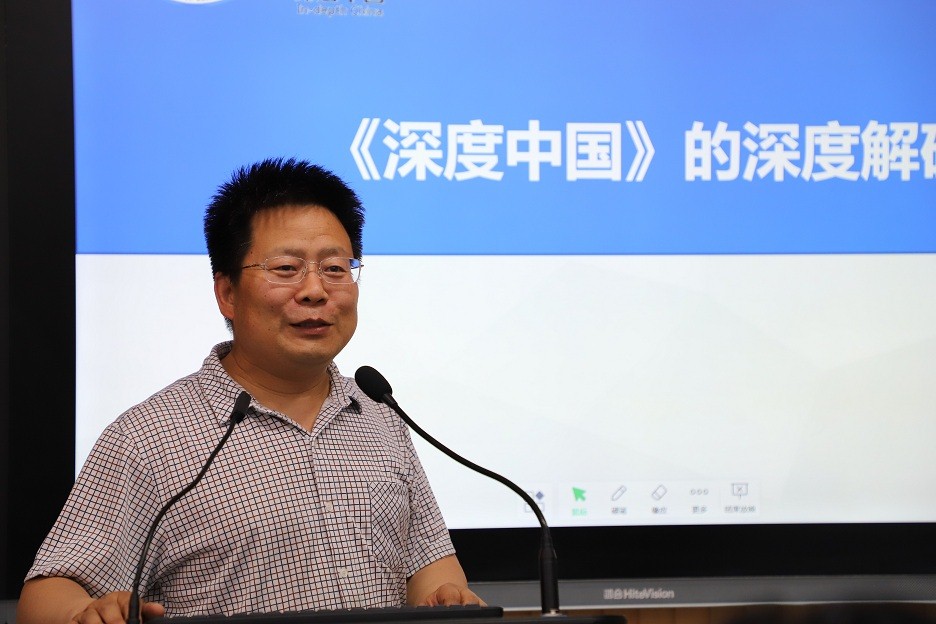 黄岭峻首先从其自身从事思政课教学经历、外界对于马克思主义学科的偏见以及为学生生树立四个自信等方面出发,介绍了深度中国这一课程的来历,并为大家解读了课程“深度的了解中国,了解深度的中国”的中心思想。随后,黄教授从以下几个方面对深度中国课程进行了详细介绍:课程坚持“让合适的人做合适的事”的原则,试行“一师多堂,多师一堂”的教学模式,使其教师队伍成员得以充分发挥个人所长。课程内容以社会发展,学生需求以及满意度为方向指导,具有多角度、多方面的特点,注重将马克思主义理论的最新研究成果、最新时政热点、最新实践经历引入课堂。在讲授方式上采取“讲授+互动”的方式,保有思政课程的仪式感,实现考试、考勤、师生互动的多方式一体化教学。