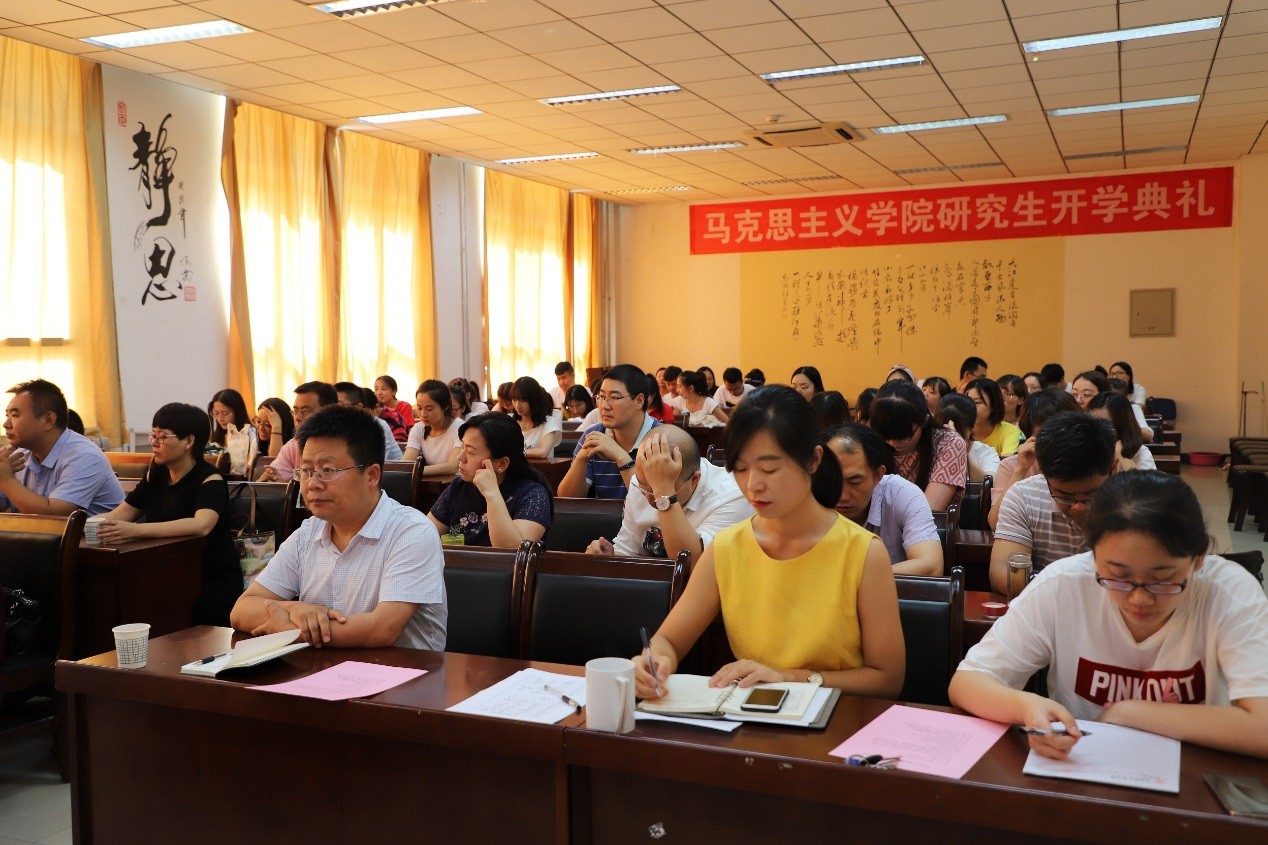 典礼上,院党委书记夏永林教授,院长、博士生导师李刚教授,导师代表赵常兴副教授,老生代表李逸君以及新生代表韩熠阳分别进行讲话与发言。夏永林首先对2018级新生加入马院大家庭表示热烈的欢迎,进而对新生表达了几点殷切的希望:第一,珍惜机会。当前国家与学校给予马克思主义理论学科与思想政治教育学科空前的重视,马院研究生应该抓住形势赋予的机会;第二,坚定信念。要提高学习的自主性,做到在马爱马,在马言(研)马,将马克思主义作为事业,而非职业;第三,努力奋斗。学习习近平总书记对青年学生努力奋斗的要求,砥砺自己,勇于进步;第四,坚守底线。坚守做人的底线,坚守做学问的底线,始终保持高尚的节操。
