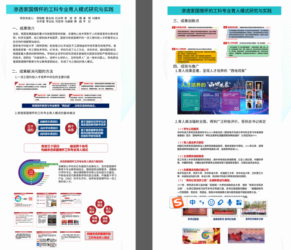 近日,教育部下发了《关于批准2018年国家级教学成果奖获奖项目的决定》(教师[2018]21号),依托我院2项陕西省教学成果一等奖申报,校党委书记郑晓静院士、学院党委书记夏永林教授牵头的教学改革项目“渗透家国情怀的工科专业育人模式研究与实践”荣获国家教学成果二等奖。