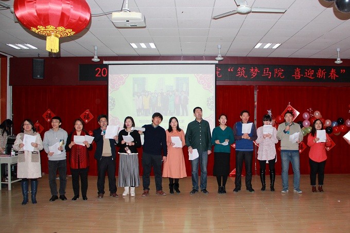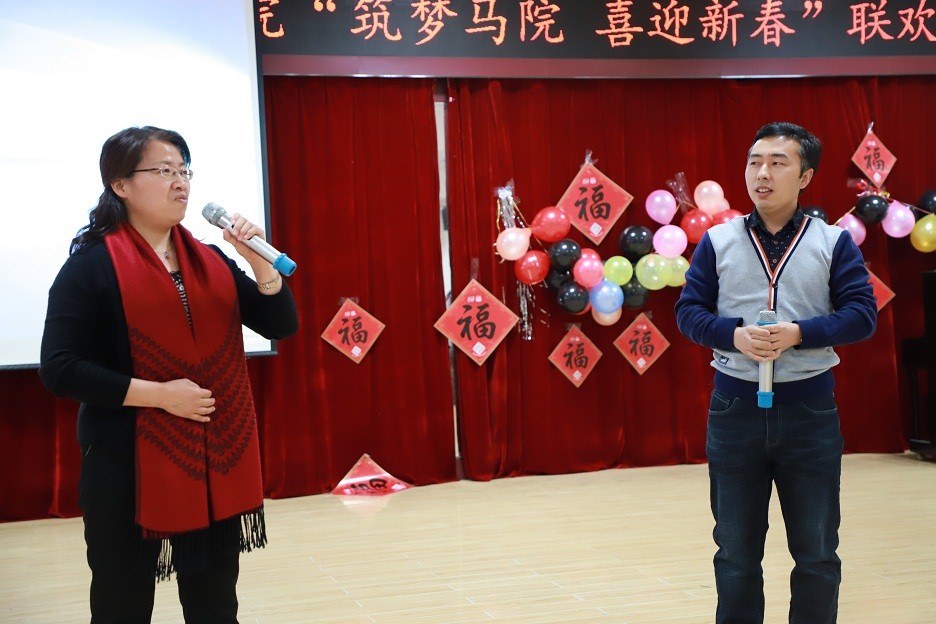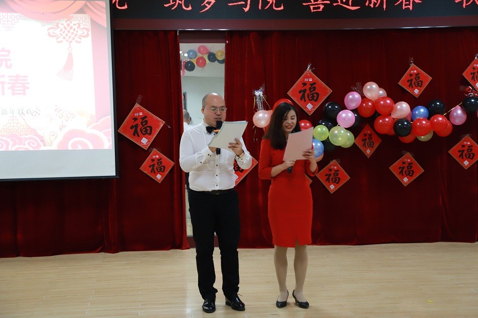 联欢会由杨伟刚老师与杜敏老师主持。联欢会伊始,学院党委书记夏永林作开场致辞,他简单总结了过去一年学院所做的工作与成绩,预祝全院师生新春快乐,并对联欢会表示支持与期待。