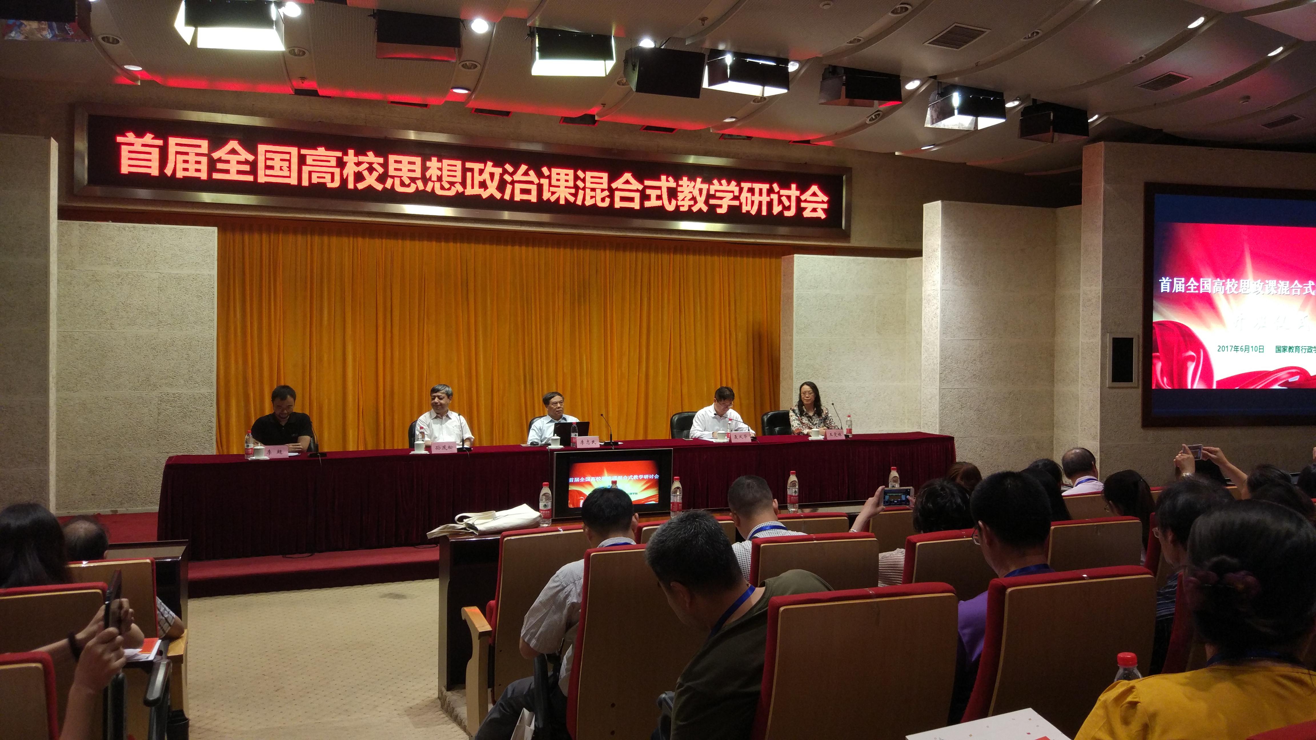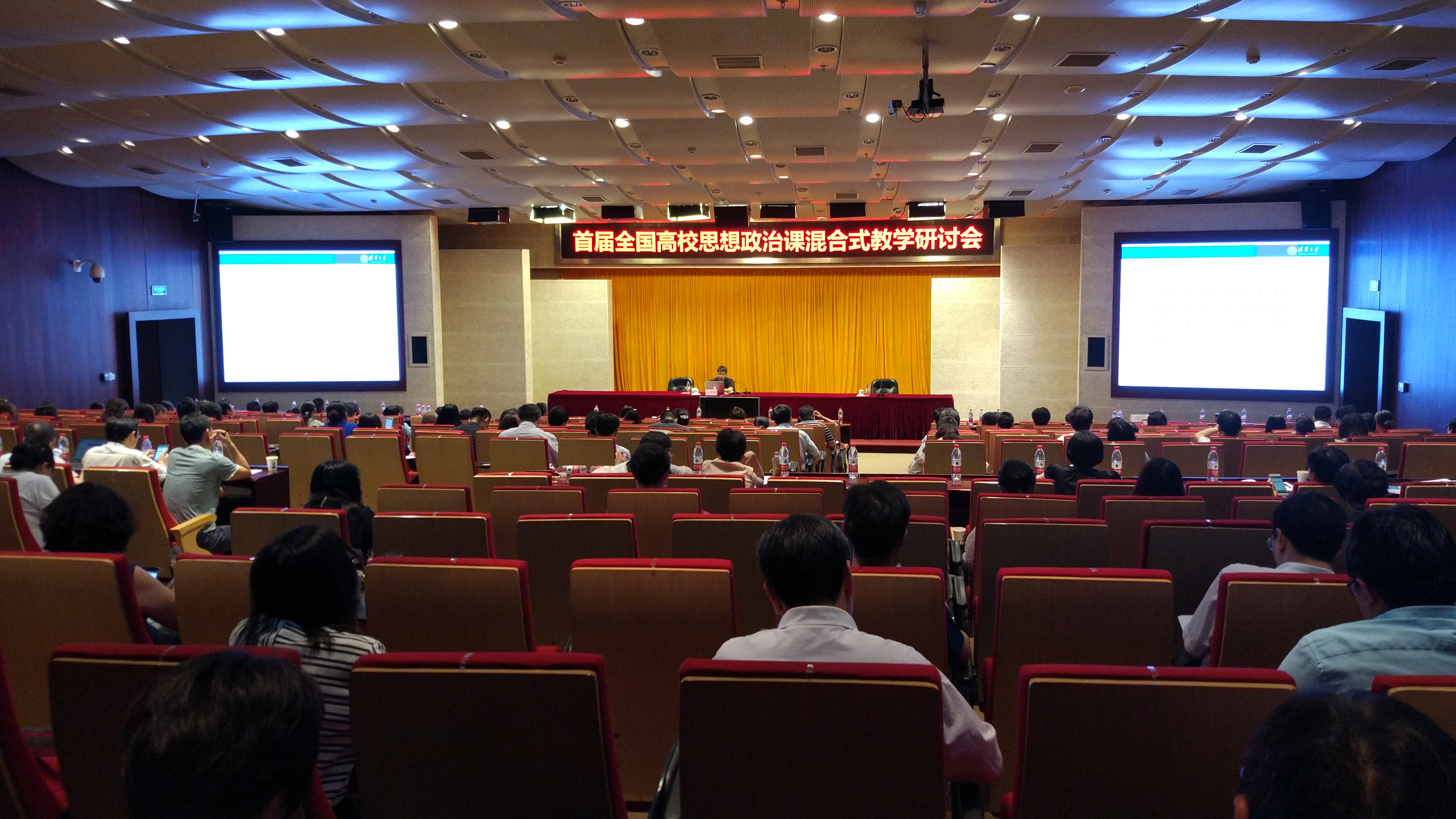 “首届全国高校思政课混合式教学研讨会”是由教育部在线教育研究中心指导、学堂在线主办、高教国培(北京)教育科技研究院承办的,主要讨论在2016年全国高校思想政治工作会议精神指导下,如何着力解决当前思政课普遍存在的“配方陈旧、工艺粗糙、包装不时尚”等问题。