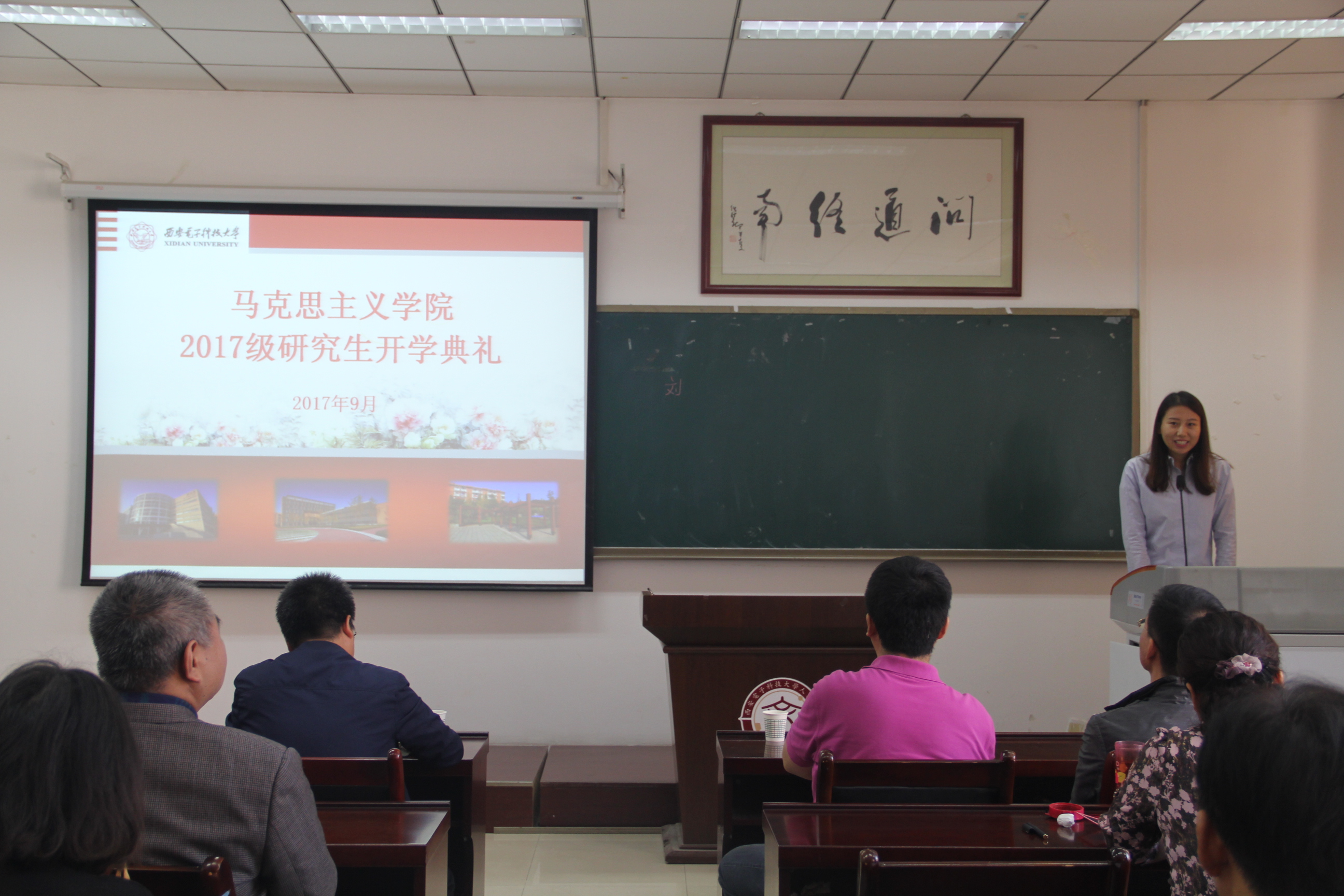 研究生代表郭雨晴表达了对新生的欢迎和关怀之情,希望大家热爱经营生活、热爱求索知识、热爱探索世界,在西电活出诗意的自我