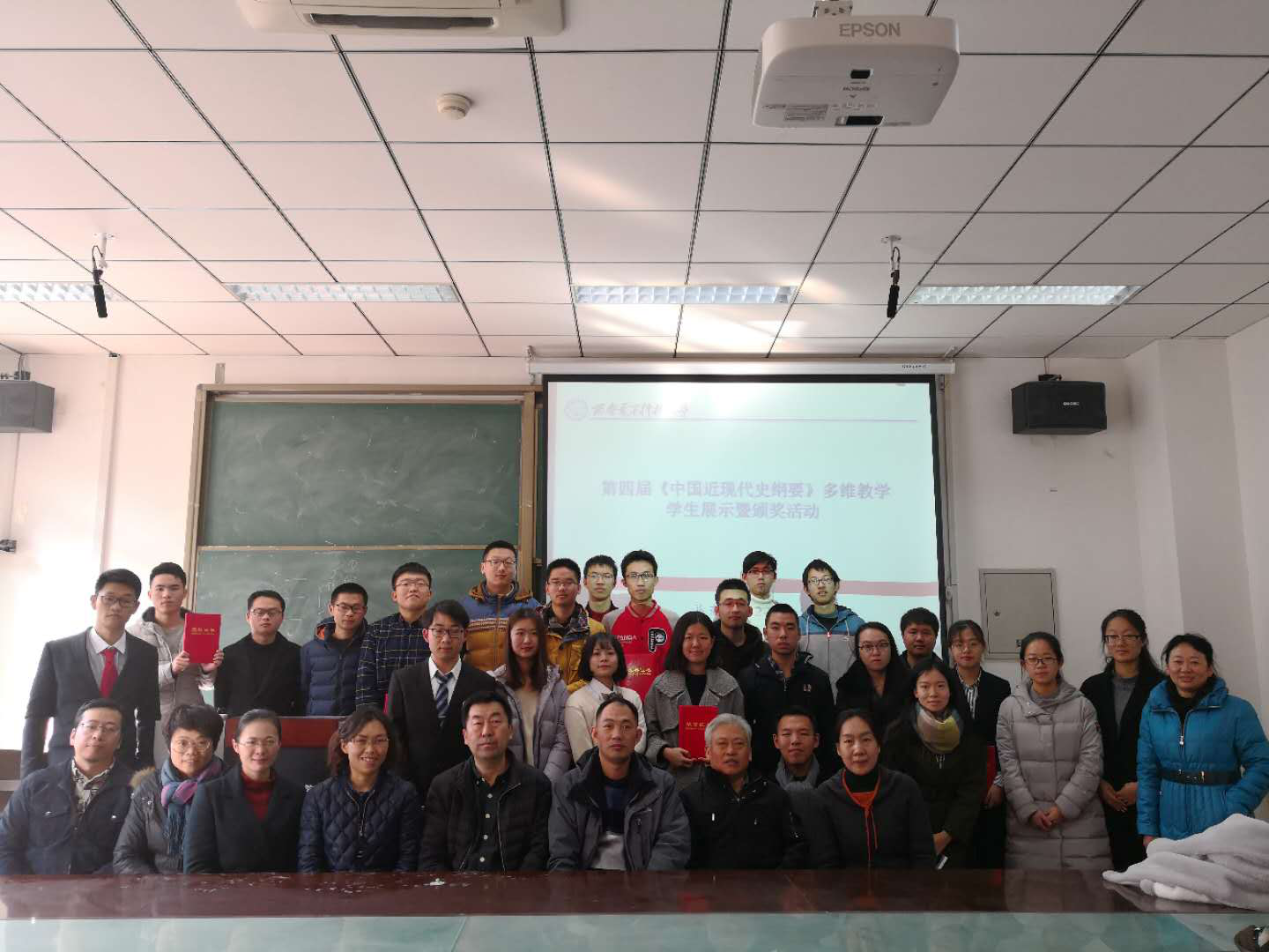 纲要课多维教学是“专题授课,学生讨论”相结合的教学模式,在教学过程中充分调动学生学习的积极性,引导学生思考问题,实现书本知识向思想素质的转换,从而增强教学的时效性和学生的获得感。参加此次全校教学成果学生展示活动共计16个小组,是在我校2016级本科生中选拔产生的。在展示过程中,同学们充分地体现出了当代大学生的学习创新能力与独立思考能力,更重要的是在展示中体现出当代大学生对历史问题的关注以及对于国家与民族未来的企盼。学生展示结束后,各位教师经过认真磋商,评选出特等奖2组、一等奖3组、二等奖4组以及三等奖7组。