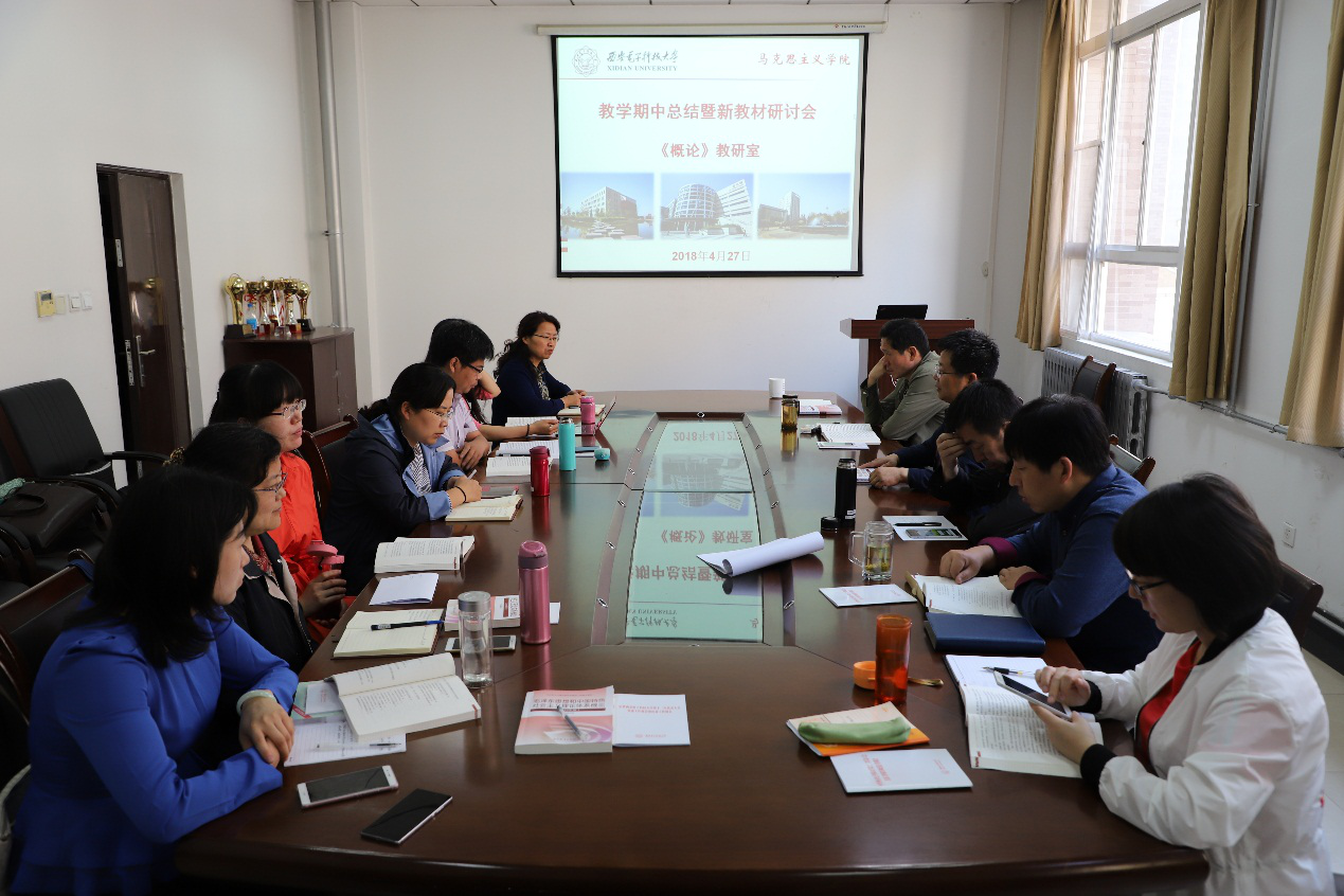 学院党委书记夏永林教授结合参加由山西师范大学主办的“习近平新时代中国特色社会主义思想暨思想政治理论课教学改革研讨会”的体会,向与会教师分享了“概论”新教材的修订背景、修订过程和内容方面的创新点,强调教师在教学过程中必须充分学习和领会十九大精神,仔细研读新教材,领会新思想、新精神,讲好新时代的“概论”课。