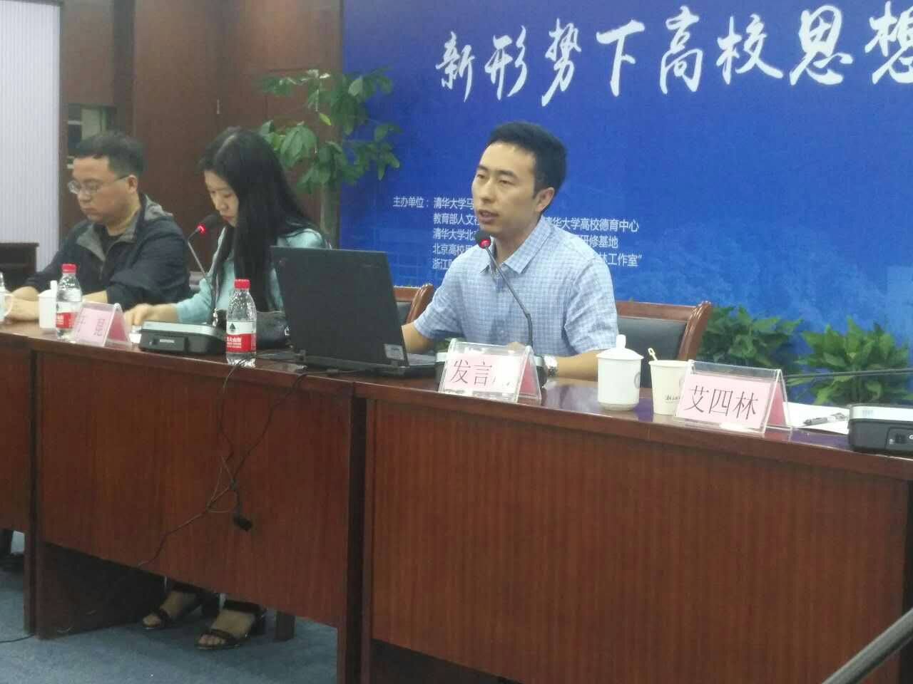 5月13-14日,“新形势下高校思想政治工作与思想政治理论课创新”学术研讨会在浙江财经大学隆重召开,来自全国56所高校近90位专家学者出席本次盛会。清华大学yl23455永利集团院长艾四林教授在开幕式上做主旨演讲。我院原理教研室张鹏伟老师参加会议并作了《大学生思想政治理论课教学中主体的交互性和多维性》的主题发言。