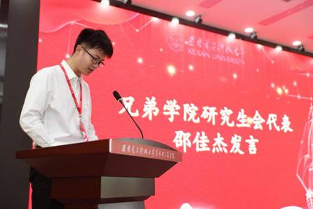 随后,网络与信息安全学院研究生会代表邵佳杰代表兄弟学院研究生会对马院研究生会在过去一年中取得的成绩表示祝贺,希望在以后的工作中加强兄弟学院的相互交流、相互借鉴,实现共同发展。