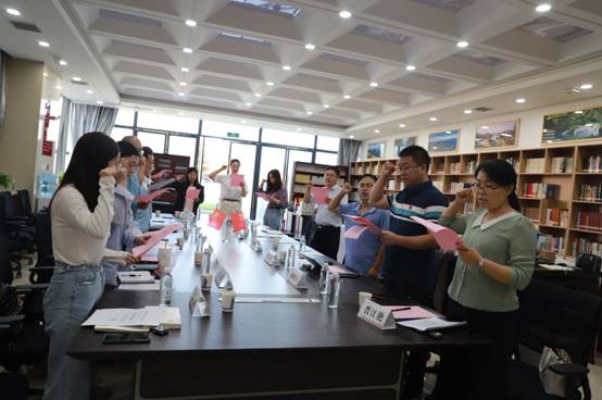 会上,学院领导班子和新教职工认真观看学校2021年庆祝教师节暨先进表彰大会直播,仔细聆听校领导讲话,开展新教师入职宣誓,并合唱校歌。