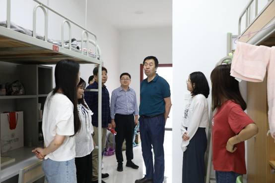 9月6日下午,院党委书记夏永林、副书记刘建伟、副院长王晋、科研干事张瑾及研究生辅导员章萌、赵影等人来到续建5号宿舍楼及丁香15号宿舍楼,走访新生宿舍,了解新生住宿情况,与新生进行亲切交流,并鼓励大家要调整状态,尽快适应研究生学习生活。
