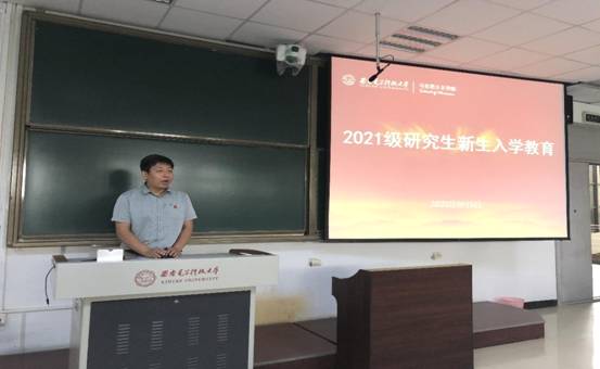 9月5日上午,院党委副书记刘建伟从学校学院规章制度、研究生生涯规划、科学研究、自我管理、未来就业等方面展开介绍和讲解,他指出,在读研期间要明确自己努力的方向,勤奋学习,把握机会,多多锻炼与提升。