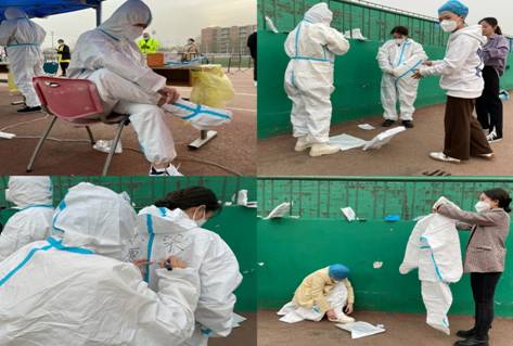 我院志愿者积极配合采样人员的工作,检测现场从采样到离场,秩序井然。紧张、有序的核酸采样工作在大家的共同努力下,于中午12:30准时结束。