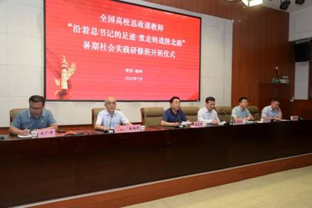 (通讯员:刘峰存)为深入学习贯彻习近平新时代中国特色社会主义思想,深刻领会习近平总书记在高校思想政治理论课教师座谈会上的重要讲话精神,引导学院思政课教师进一步感悟党的百年历史、传承红色基因、勇担育人使命,不断提高思想政治素质和业务能力,更好地开展思想政治理论课改革创新。2022年7月18日至23日,yl23455永利集团组织17名思政课教师赴榆林市清涧、绥德、吴堡、米脂等地参加了榆林学院组织举办的全国高校思政课教师“沿着总书记的足迹·重走转战陕北路”暑期实践研修班。7月19日上午,五所院校70余名教师参加了此次实践研修开班仪式。