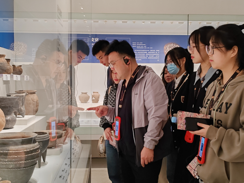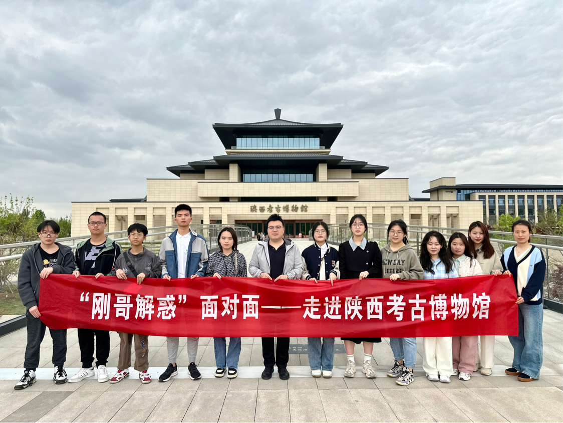 (通讯员 杨雪莹)为理解陕西文化的基因图谱,感受中华文明的璀璨绚烂,提升青年一代的文化自信,传承中华优秀传统文化,弘扬中华民族伟大精神,4月14日下午,“刚哥解惑”面对面系列活动第一站来到了国内首家考古博物馆——陕西考古博物馆。在杨伟刚老师的带领下,“刚哥解惑”思政工作室成员和我校本科生共同开展“走进华章陕西,守护历史根脉”主题活动,感知三秦大地的厚重,体味华夏文明的魅力。