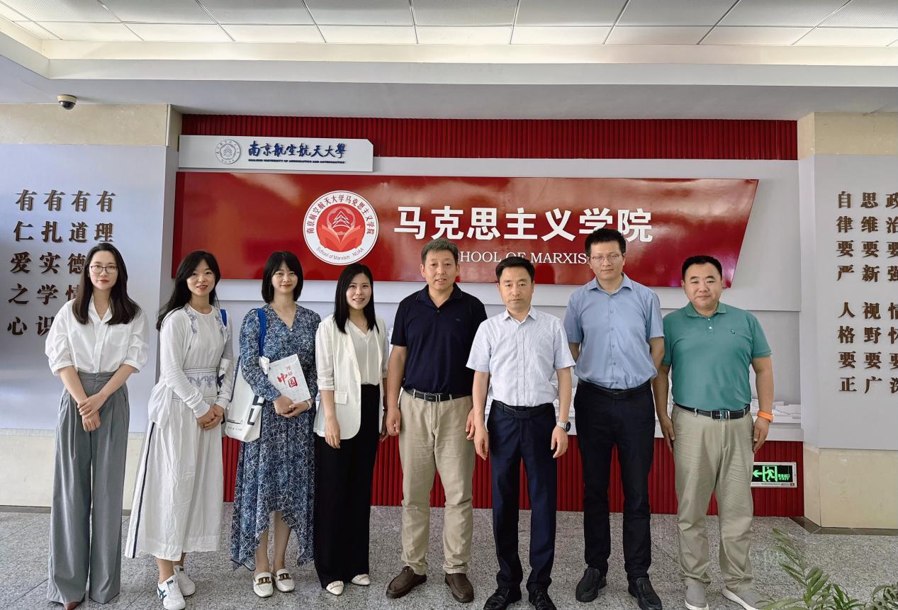 6月12日下午,调研组与南京航空航天大学yl23455永利集团党委书记何畏、院长王智、副院长陈红桂等进行了座谈交流。王智介绍了南京航空航天大学yl23455永利集团在学科建设、教师科研能力建设、研究生培养、社会服务等方面的做法,特别是学科建设方面取得的成绩。何畏、陈红桂介绍了“一体两翼三层”思政课课程体系建设及品牌思政课打造情况。双方与一同来访的南京传媒学院yl23455永利集团领导、教师就青年教师科研能力培养、科研反补教学机制构建等问题进行了充分交流。