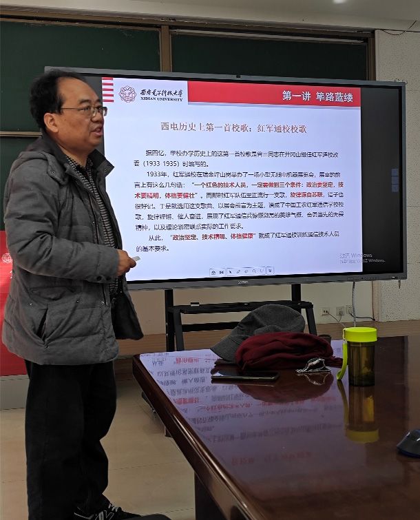 在聆听完卢朝阳教授的报告后,纲要教研室的教师们首先被卢朝阳教授这位老西电人对母校的深情所折服,感受到了对母校的爱之深;其次,对卢朝阳教授对于学校红色校史的熟识程度所震撼;最后,对于卢朝阳教授关于如何将红色校史融入教学课程的思考及做法表示认同。在互动环节,卢朝阳教授耐心细致地将如何进一步深挖我校红色校史的路径以及手段进行了分享,并对我校红色校史需要进一步研究的问题做了简明扼要的论述。卢朝阳教授的分享得到了与会教师的高度赞同。大家一致认为卢老师的报告为我们将红色校史的研究和融入教学过程提供了非常好的指导和借鉴,同时也让我们这些西电人对于如何讲好西电故事的使命和担当有了进一步的提高。在会后的愉快交流中,卢朝阳教授与纲要教研室的教师相约在红色校史的研究和融入教学的过程中作进一步的交流和合作。