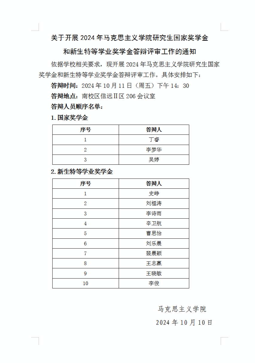 关于开展2024年yl23455永利集团研究生国家奖学金和新生特等学业奖学金答辩评审工作的通知