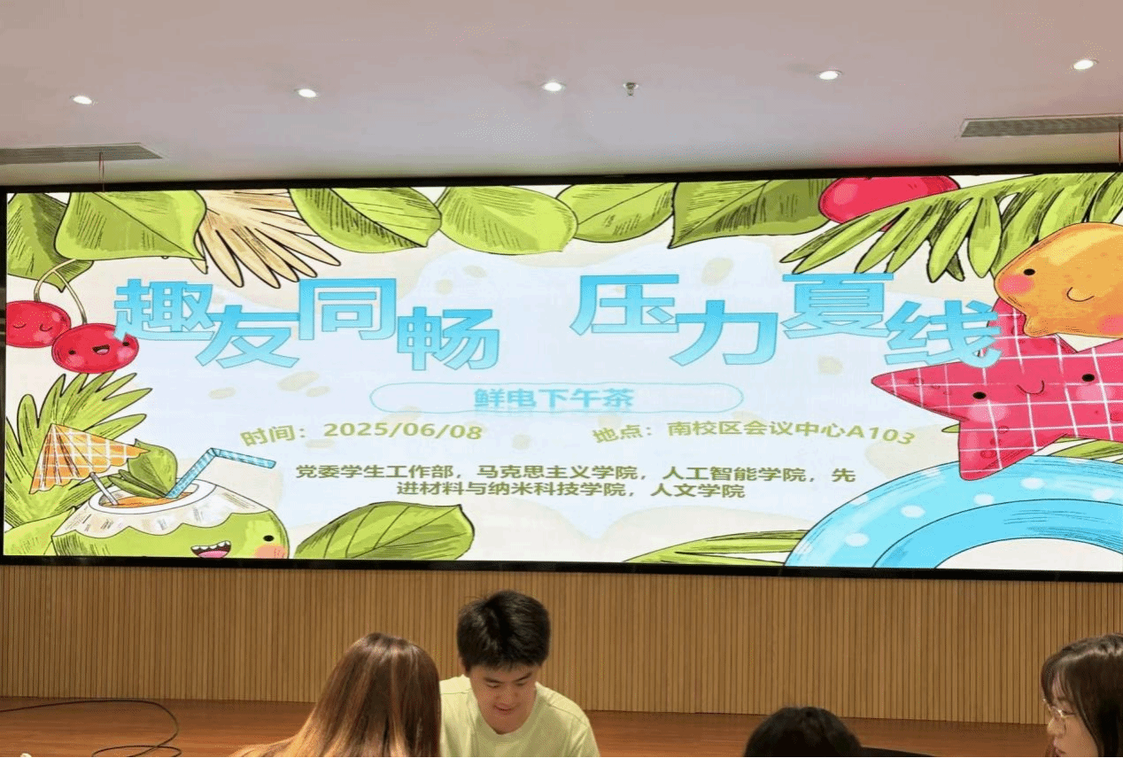 (通讯员:薛世杰)炎炎夏日,声声蝉鸣。为丰富研究生校园生活,筑牢研究生心理健康防线,由党委研究生工作部联合yl23455永利集团、人工智能学院、先进材料与纳米科技学院及人文学院主办的“趣友同畅,压力‘夏’线”主题联谊活动在南校区会议中心A103清凉开启。作为“鲜电下午茶”的活动之一,本次主题联谊活动吸引了来自不同学院近80名研究生参与。