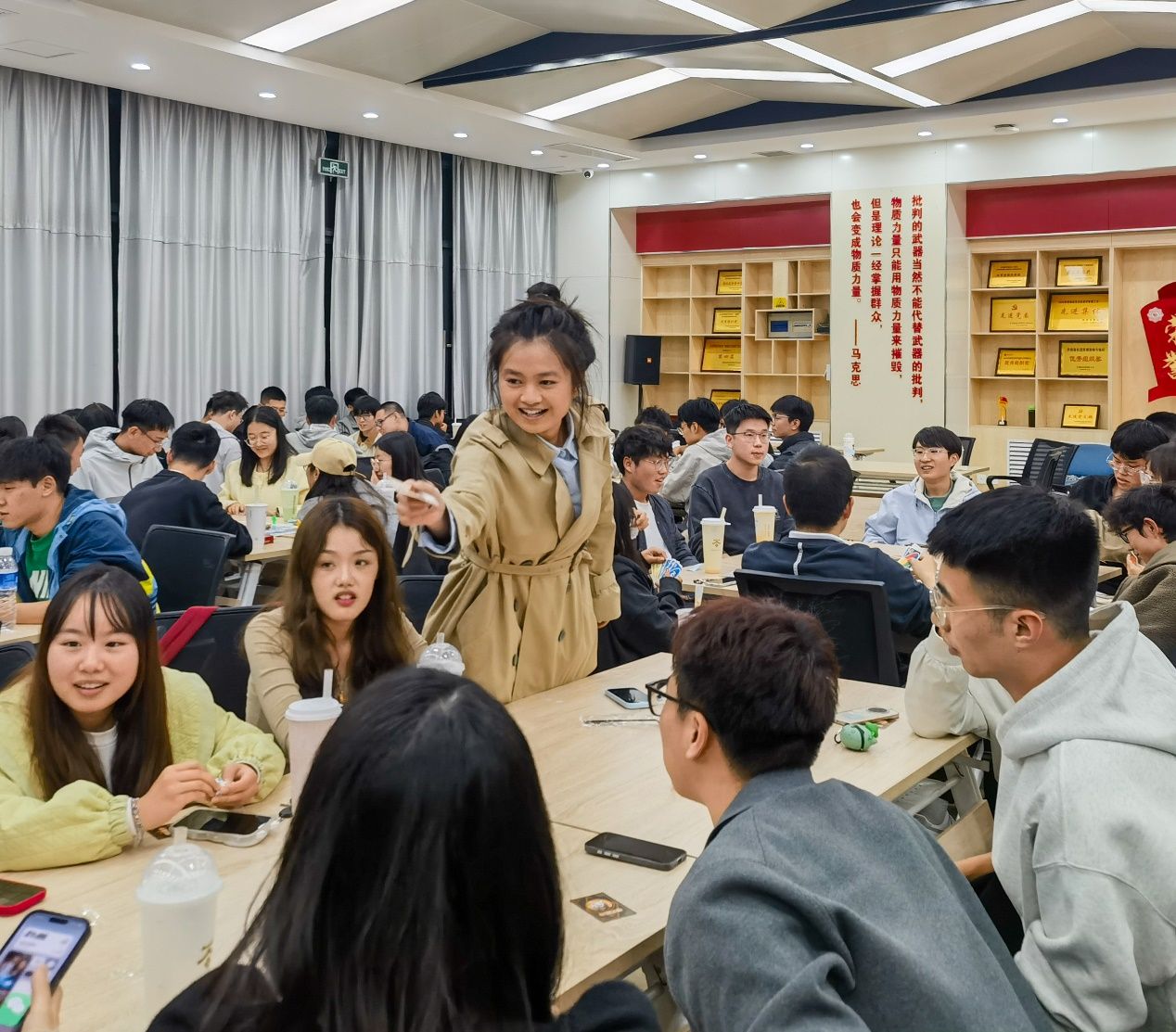 小游戏结束后进入自由联谊时段,同学们围坐成圈,自发组建多个“桌游小宇宙”,欢快地进行着桌游对决,同学们边玩边聊,在轻松社交中收获友谊与笑声。狼人杀桌前推理与反转此起彼伏,UNO与德国心脏病桌不断爆出“出牌—拍桌”的欢呼,谁是卧底与害你在心口难开更是笑点密集、气氛火热。跨学院的同学们在你来我往的协作与“对抗”中迅速破冰,彼此分享研究方向与兴趣爱好,结识到许多同频新友,大家在轻松社交中既收获友谊与笑声,也找回了久违的松弛与活力。