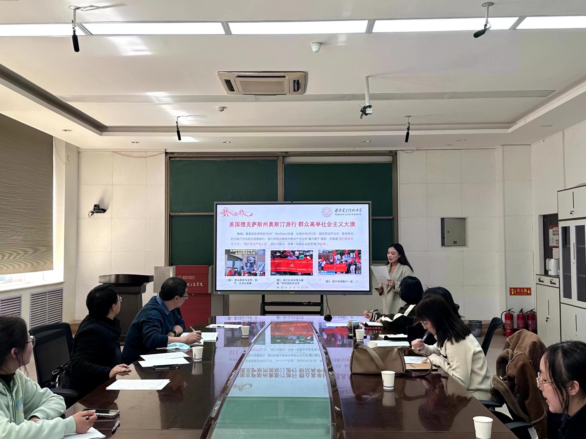 本次打磨培训会重点通过试讲磨课,进一步提升成员的宣讲能力。经过自主备课,宣讲团成员形成了宣讲稿和PPT的初稿。宣讲团成员马聪聪、任静怡、郭璐娜、胡先睿、何静按照顺序依次就选定主题进行展示,五位成员紧密围绕时政热点,为大家呈现出多场声情并茂、极富感染力的宣讲。
