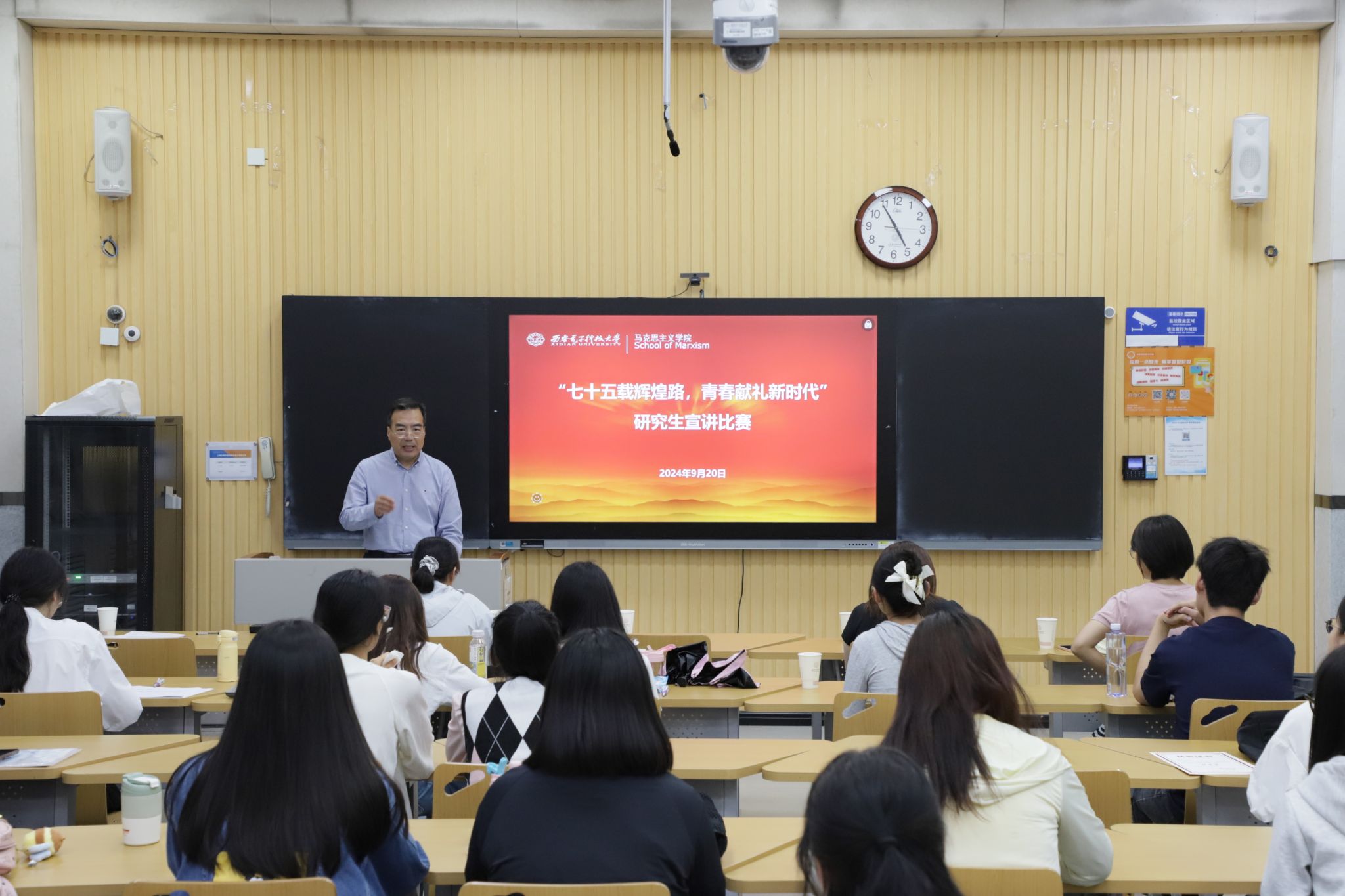 (通讯员:李晓 周祎琼)为深入学习宣传贯彻党的二十届三中全会精神,庆祝中华人民共和国成立75周年,推动习近平新时代中国特色社会主义思想深入人心,更好发挥理论宣讲统一思想、凝心聚力的作用。9月20日,yl23455永利集团于C128教室举办“七十五载辉煌路,青春献礼新时代”研究生宣讲比赛。yl23455永利集团党委副书记张海战、思政课教师孙纪瑶、思政课教师翟玉华、学院办公室主任付一枫、研究生辅导员章萌以及“青”声“习”语研究生宣讲团成员代表和部分研究生参加此次活动。