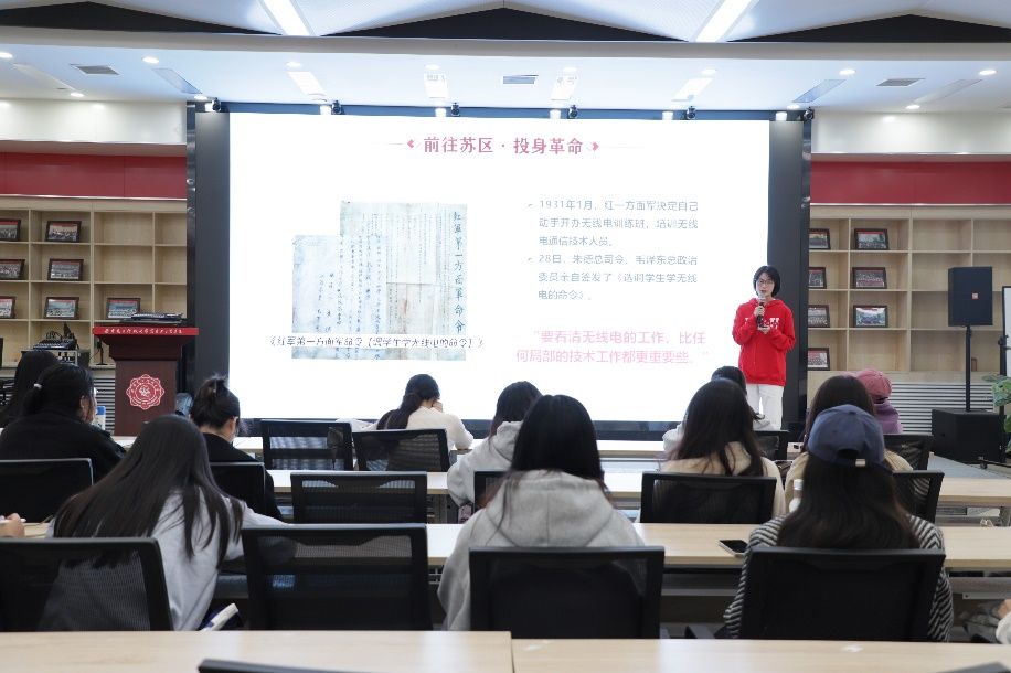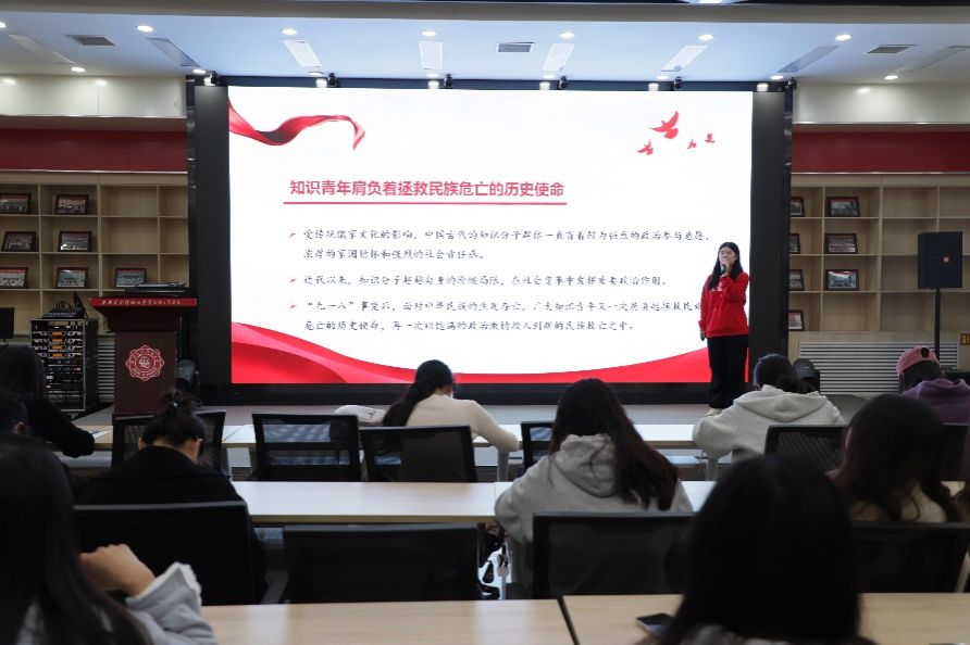 出发前,同学们齐聚南校区B112报告厅,通过倾听“青”声“习”语宣讲团成员的讲述来共同学习八路军西安办事处的相关历史故事和英雄人物。王亚芳介绍了张露萍同志的生平和她保护党内情报机密,不畏强暴英勇就义的先进事迹,一首《七月里的石榴花》深刻展示了张露萍同志坚贞不屈的意志和对党的忠诚热爱。王志赢对代号“木匠”的涂作潮同志进行了介绍,他青年立志,为国而学,积极参与到党的无线电教学中去,为党组织的事业贡献了自己的毕生力量,是精钻通讯的伟大共产主义战士。王遥远对西安“八办”精神进行了系统而深刻的讲解,对广大知识青年奔赴延安抗日的原因和经历进行了阐述,充分展示了中国共产党打赢抗日战争的坚定决心和不畏艰险的顽强意志。