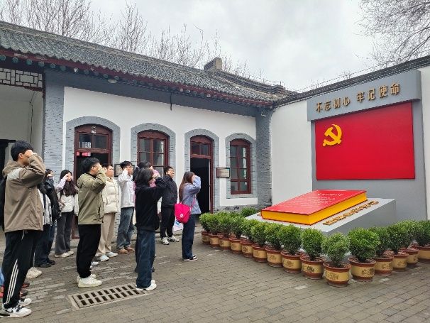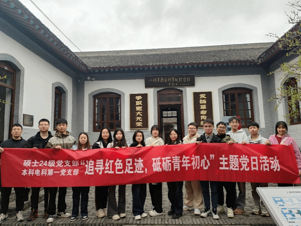 宣讲结束后,学院本科电科第一党支部、硕士24级党支部党员前往八路军西安办事处纪念馆开展实地研学。在讲解员的带领下,同学们依次参观了办事处旧址和历史纪念馆,学习八路军西安办事处的红色历史,共同感受红色文化的浸润和革命文化的荡涤。随处可见的黑白照片、整齐的工作用具、历史厚重的古朴建筑再现了当年八路军在此艰苦奋斗的场景,仿佛将众人带回了那段艰苦卓绝的革命岁月。最后,全体党员在纪念馆广场重温入党誓词。