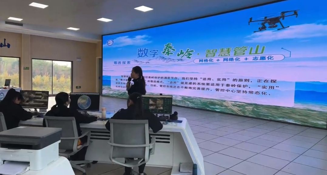 随后,师生们前往秦岭生态环境保护研究中心和秦岭保护智慧管控中心。在这里,大家集中观看了电子沙盘系统等现代科技对秦岭的常态化保护和智能化监管,感受到了科技在秦岭生态保护中的重要作用。