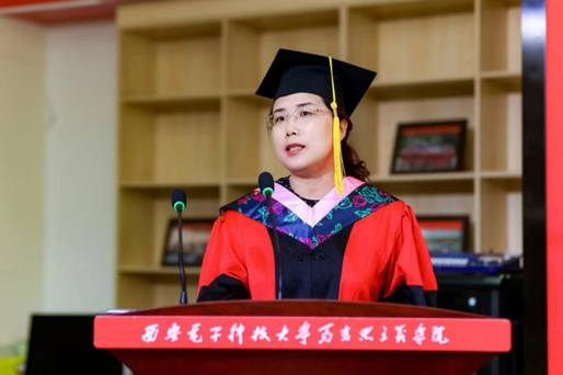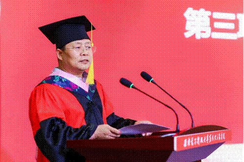 毕业典礼在雄壮的国歌声中拉开帷幕。首先,学院院长李刚致辞。他向顺利完成学业的2023届毕业生表示热烈的祝贺,谈到在未来的人生路上又将面临更多的挑战和人生抉择,他用勇敢、低调、担当、坚持四个词来表达对毕业生们的殷切期望。希望同学们在今后的生活中能够摆脱苟且和懒惰,勇敢面对今后工作生活上的困难;以一个时代新人的姿态面对崭新的生活,努力学习提高自我;勇担生活的重担,在今后的工作中面临逆境时顾全大局,克服困难;怀揣志气抱负,持之以恒,努力实现心中美好的愿景。最后,李刚院长衷心地祝愿毕业生们前程似锦。