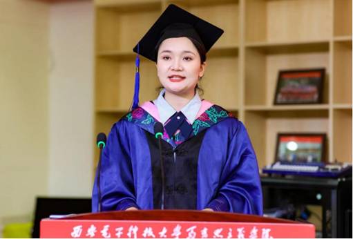 毕业生代表张文华发表毕业感岁月,回顾了老师们孜孜不倦的教诲,回顾了丰富多彩的校园言。她饱含深情地站在发言席,回顾了在学校三年难忘的生活,回顾了与同学们结下的浓浓同窗创情谊,道出毕业生们共同的心声。张文华同学表示,师恩难忘,要持感恩之心不断完善自己;要在担当中不断实现自我价值;要从容面对未来的各种风险,坚守理想、坚定信念,不辜负母校的殷切期望。
