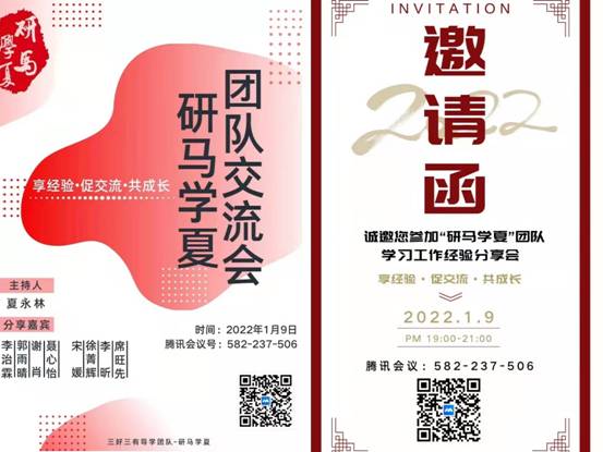 2022年1月9日晚,“研马学夏”导学团队线上学习工作经验分享会举行。会议由导师夏永林教授主持,“研马学夏”导学团队的21名师生参加会议。