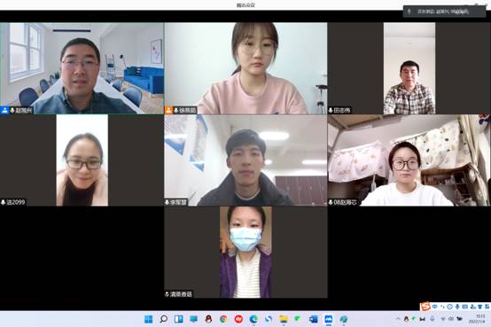 徐燕茹和张静茹分别就自己硕士毕业论文的修改情况、就业方面的进展向团队进行了详细汇报,并交流了当前就业面临的一些难题。赵海芯就自己在校的学习状况、期末考试的相关安排、复习进度等作了汇报。赵常兴老师鼓励大家克服当前困难,利用封闭期间,鞭策自己加快论文修改进度、关注就业信息、积极准备课程考试等,不要浪费宝贵时光。