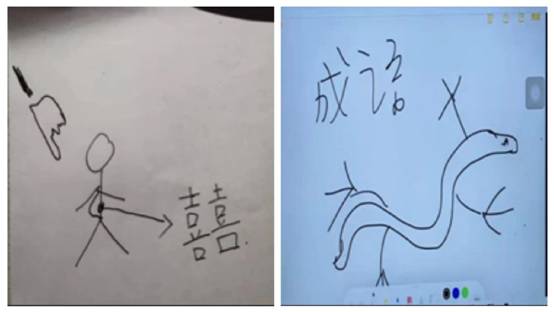 你画我猜:《指腹为婚》(许晴原创)、《画蛇添足》(张嗣苗原创)