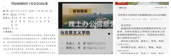 1227日学校防疫工作会议采取封控措施当晚,学院召开疫情防控工作线上紧急会议进行安排部署,组织工作力量、建立联防机制、制定工作方案、研究应急措施。党委书记夏永林、院长李刚统筹部署,副院长刘建伟、王晋协力组织,学院办公室综合协调,党支部、教研室和广大党员、师生立即行动起来开展工作,与师生密切联系。在师生大力支持、配合下,快速开展情况摸排,协调、解决遇到的困难和问题。学院召开教学委员会线上会议,及时安排疫情防控中教学工作。