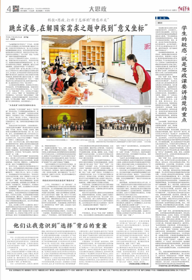 尹西明发现,参与过“科技+思政”类课程的学生,往往会更愿意主动将职业规划与国家亟须攻坚的“卡脖子”技术清单相结合,具有更强烈的社会责任感。