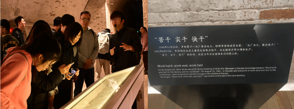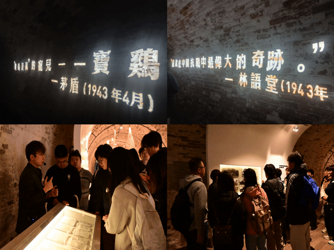 深入窑洞车间,梳棉机、捻线机等机器的轰鸣声仿佛穿越时空,向师生们传递着抗战时期工人的辛勤与奉献。1943年,面对日军的狂轰滥炸,1.2万枚纱锭和诸多设备在窑洞的庇护下得以“防身护体”,继续为前线将士生产急需的物资,创造了抗战工业史上的奇迹。沉浸其中的师生们心灵被深深地触动,感悟如潮水般涌上心头。