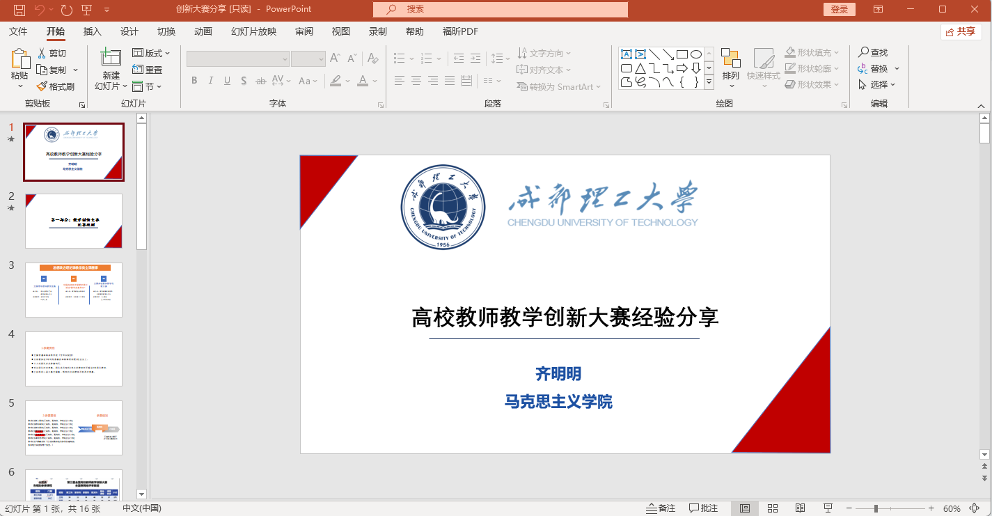 (通讯员 李瑾)为贯彻落实习近平总书记“3·18”重要讲话精神,进一步提升思政课教学质量,推进实现“八个相统一”,营造“以赛促教、全员提高”的氛围,3月13日下午,马院德法教研室在信远II区206召开了教学创新大赛经验分享会。会议邀请了成都理工大学思想政治理论课教研部副主任齐明明副教授作为主讲人进行线上经验分享。齐老师曾荣获第三届全国高校教师教学创新大赛二等奖、四川省第三届高校教师教学创新大赛一等奖、第五届全国高校混合式教学设计创新大赛三等奖、第五届混合式教学创新大赛“设计之星”专项奖。参与会议的有马院、电子工程学院、物理学院、数学与统计学院等多个学院的共24人。
